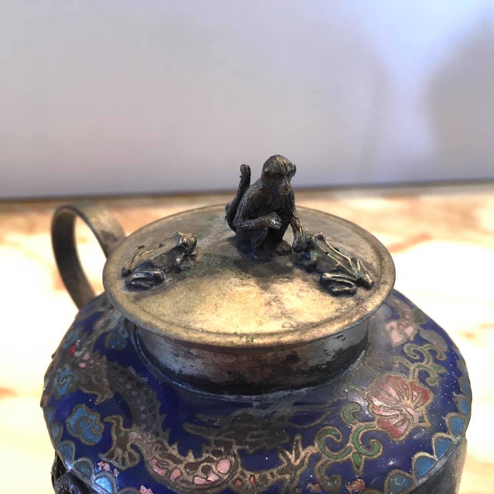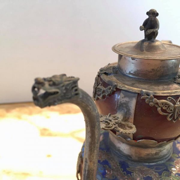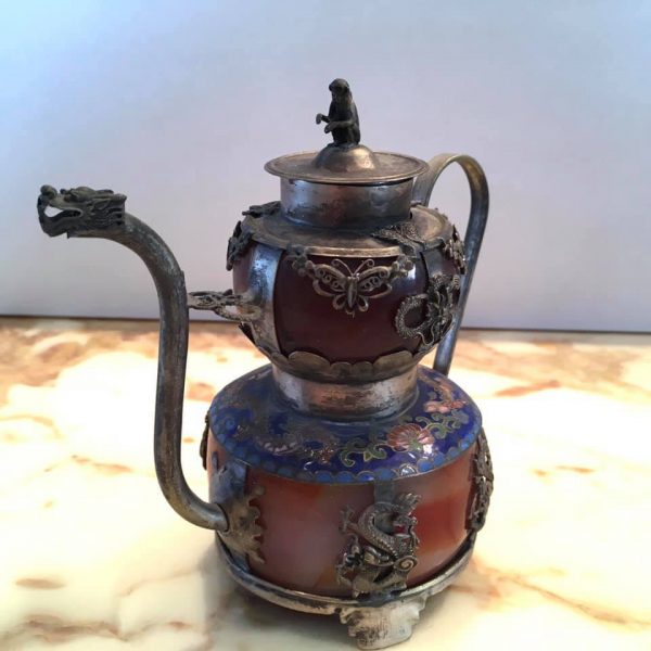 - Kännchen/Achat mit Drachenkopfausguß & Äffchenfigur auf dem Deckel (Höhe ca. 14 cm, Durchmesser ca. 7 cm)