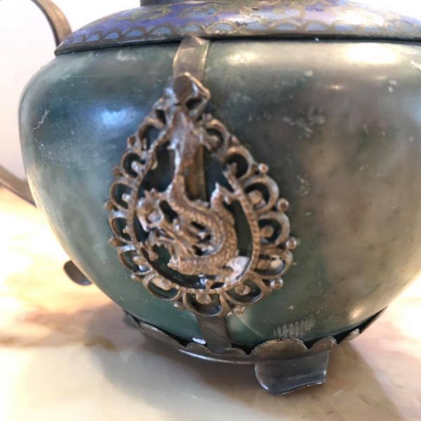 - Kännchen/Jade mit Heiligenfigürchen auf dem Deckel (Höhe ca. 10 cm, Durchmesser ca. 10 cm)
