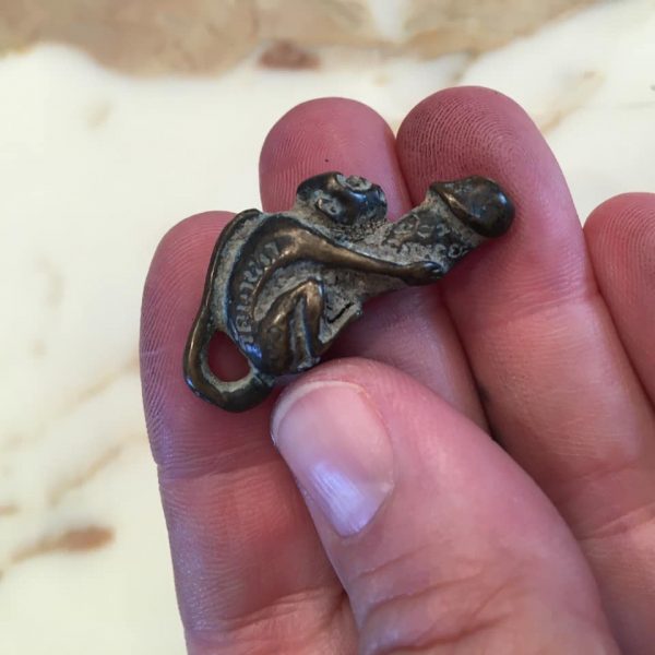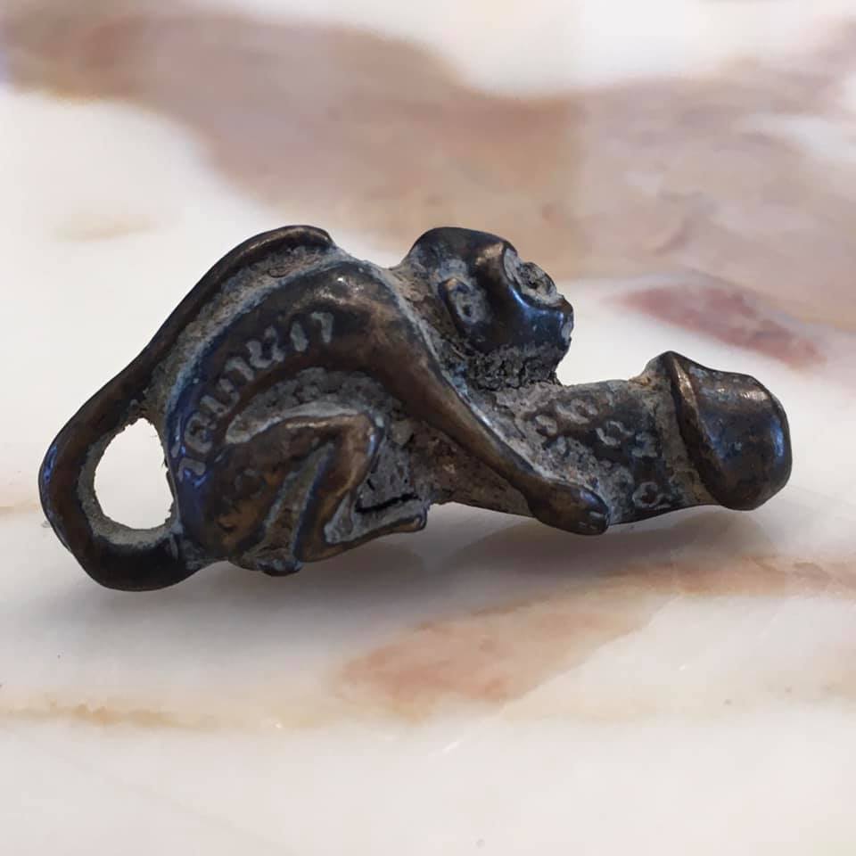 Von mir persönlich vor 30 Jahren bei einem Flussfischer in Bangkok gekauft ca. 5,5 cm x 1 cm Messing, auch als Anhänger (Salamanderschwanz) tragbar €40,- (Versand auf Anfrage unter info@jungbluth-lifestyle)